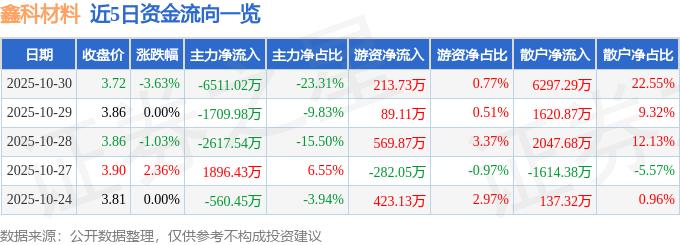 证券之星消息,截至2025年10月30日收盘,鑫科材料(600255)报收于3.72元,下跌3.63%,换手率4.1%,成交量74.11万手,成交额2.79亿元。