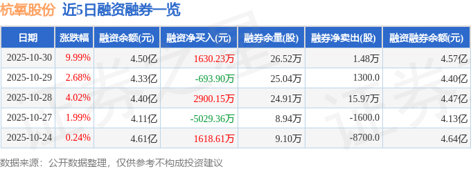 证券之星消息,截至2025年10月30日收盘,杭氧股份(002430)报收于29.52元,上涨9.99%,涨停,换手率5.06%,成交量49.47万手,成交额14.3亿元。