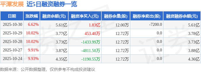 证券之星消息,截至2025年10月30日收盘,平潭发展(000592)报收于6.44元,上涨6.62%,换手率51.22%,成交量980.99万手,成交额62.22亿元。