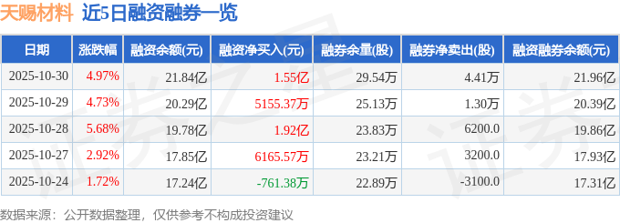 天赐材料融资融券信息显示,融资方面,当日融资买入7.99亿元,融资偿还6.44亿元,融资净买入1.55亿元,净买入额两市排名第18,连续3日净买入累计3.99亿元。融券方面,融券卖出5.05万股,融券偿还6400.0股,融券余量29.54万股,融券余额1209.37万元。融资融券余额21.96亿元。