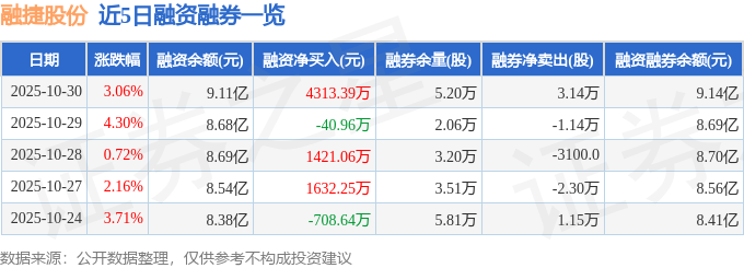 融捷股份融资融券信息显示,融资方面,当日融资买入2.01亿元,融资偿还1.58亿元,融资净买入4313.39万元。融券方面,融券卖出3.17万股,融券偿还300.0股,融券余量5.2万股,融券余额250.64万元。融资融券余额9.14亿元。