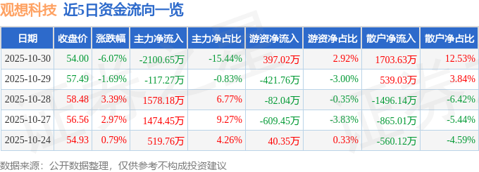 证券之星消息,截至2025年10月30日收盘,观想科技(301213)报收于54.0元,下跌6.07%,换手率4.8%,成交量2.48万手,成交额1.36亿元。
