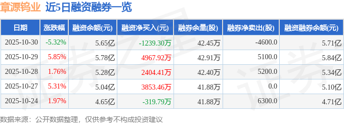 章源钨业融资融券信息显示,融资方面,当日融资买入1.28亿元,融资偿还1.41亿元,融资净偿还1239.3万元。融券方面,融券卖出100.0股,融券偿还4700.0股,融券余量42.45万股,融券余额567.19万元。融资融券余额5.71亿元。