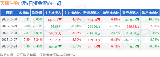 证券之星消息,截至2025年10月30日收盘,天康生物(002100)报收于7.41元,下跌5.0%,换手率2.92%,成交量39.9万手,成交额3.0亿元。