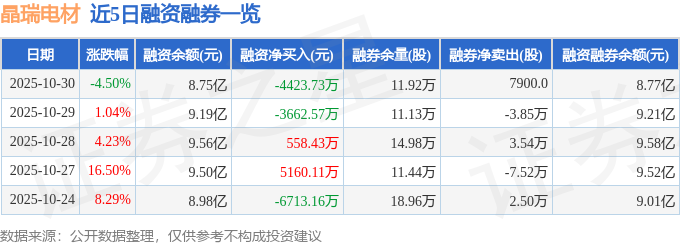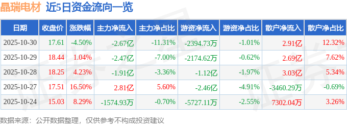 证券之星消息,截至2025年10月30日收盘,晶瑞电材(300655)报收于17.61元,下跌4.5%,换手率12.36%,成交量132.0万手,成交额23.66亿元。