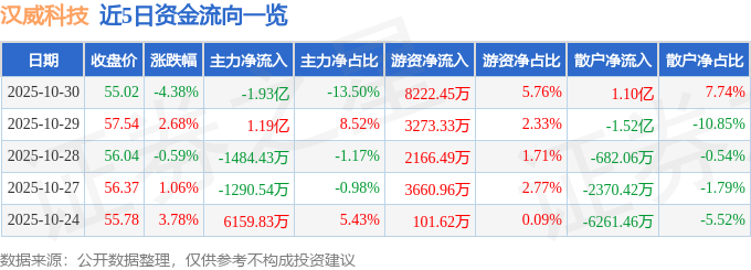 10月30日的资金流向数据方面,主力资金净流出1.93亿元,占总成交额13.5%,游资资金净流入8222.45万元,占总成交额5.76%,散户资金净流入1.1亿元,占总成交额7.74%。