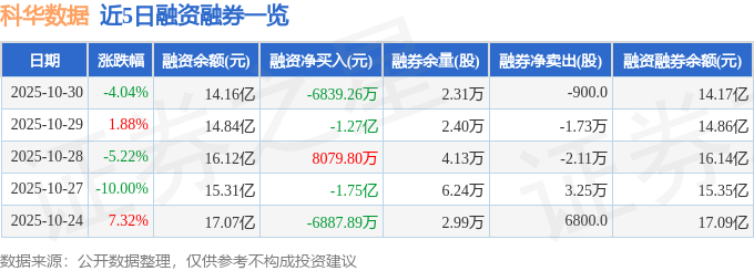 证券之星消息,截至2025年10月30日收盘,科华数据(002335)报收于55.04元,下跌4.04%,换手率9.22%,成交量41.93万手,成交额23.32亿元。