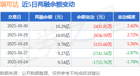 证券之星消息,10月30日,瑞可达(688800)融资买入8770.04万元,融资偿还6348.02万元,融资净买入2422.01万元,融资余额10.28亿元,近3个交易日已连续净买入累计1.02亿元。