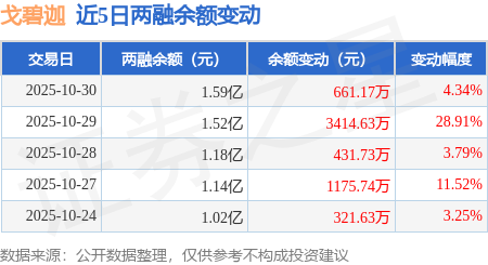 证券之星消息,10月30日,戈碧迦(920438)融资买入2845.23万元,融资偿还2184.06万元,融资净买入661.17万元,融资余额1.59亿元,近3个交易日已连续净买入累计4507.53万元。