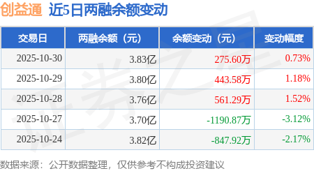 证券之星消息,10月30日,创益通(300991)融资买入1973.27万元,融资偿还1697.67万元,融资净买入275.6万元,融资余额3.83亿元,近3个交易日已连续净买入累计1280.47万元。