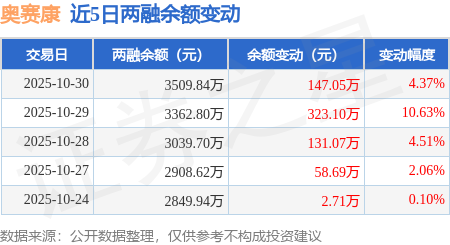 证券之星消息,10月30日,奥赛康(002755)融资买入849.21万元,融资偿还702.16万元,融资净买入147.05万元,融资余额3509.84万元,近3个交易日已连续净买入累计601.22万元。