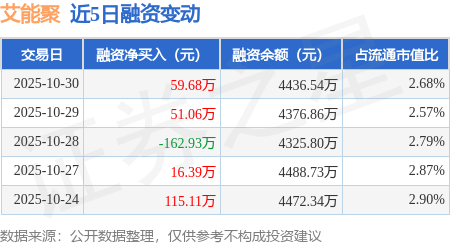 证券之星消息,10月30日,艾能聚(920770)融资买入1304.34万元,融资偿还1244.66万元,融资净买入59.68万元,融资余额4436.54万元。