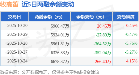 证券之星消息,10月30日,牧高笛(603908)融资买入292.95万元,融资偿还266.5万元,融资净买入26.45万元,融资余额5960.47万元。