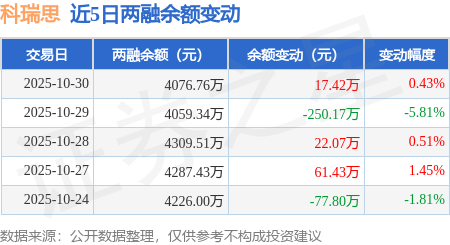 证券之星消息,10月30日,科瑞思(301314)融资买入223.84万元,融资偿还206.42万元,融资净买入17.42万元,融资余额4076.76万元,近20个交易日中有13个交易日出现融资净买入。