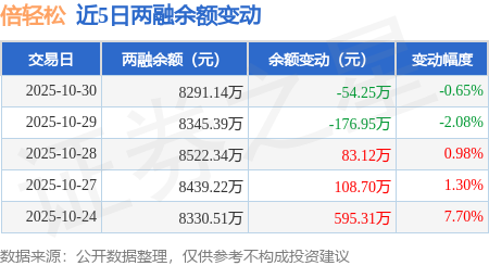 证券之星消息,10月30日,倍轻松(688793)融资买入246.72万元,融资偿还300.97万元,融资净卖出54.25万元,融资余额8291.14万元。