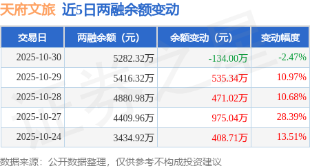 证券之星消息,10月30日,天府文旅(000558)融资买入947.15万元,融资偿还1081.15万元,融资净卖出134.0万元,融资余额5282.32万元。