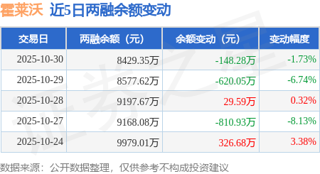 证券之星消息,10月30日,霍莱沃(688682)融资买入431.6万元,融资偿还579.88万元,融资净卖出148.28万元,融资余额8429.35万元。