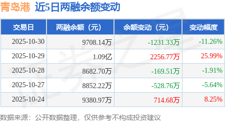 证券之星消息,10月30日,青岛港(601298)融资买入1844.64万元,融资偿还3075.97万元,融资净卖出1231.34万元,融资余额9707.71万元。