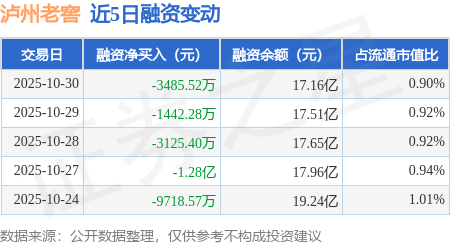 证券之星消息,10月30日,泸州老窖(000568)融资买入4940.86万元,融资偿还8426.39万元,融资净卖出3485.52万元,融资余额17.16亿元。
