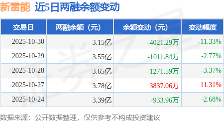 证券之星消息,10月30日,新雷能(300593)融资买入1.34亿元,融资偿还1.74亿元,融资净卖出4036.21万元,融资余额3.12亿元。