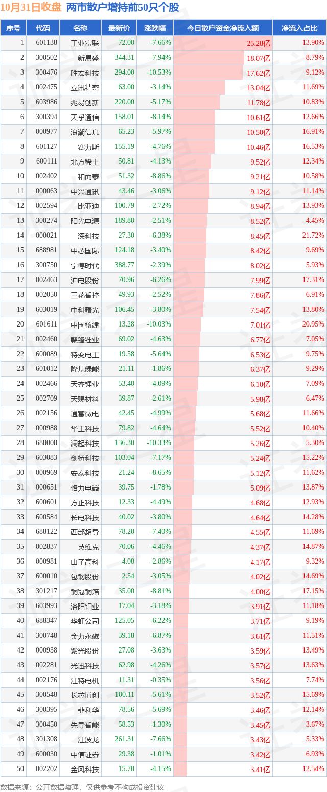 两市散户增持最多的前十只个股为: