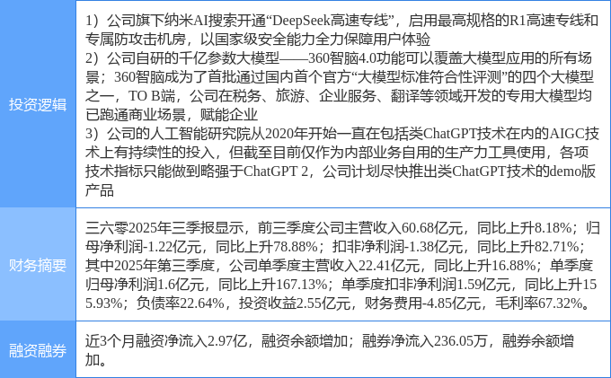 证券之星消息,三六零10月31日涨停收盘,收盘价11.97元。该股于9点54分涨停,2次打开涨停,截止收盘封单资金为3.25亿元,占其流通市值0.39%。