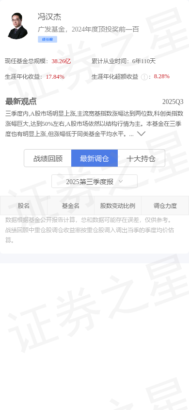 在最新基金报告期内,冯汉杰有以下调仓(附大佬持仓 - 最新调仓截图):