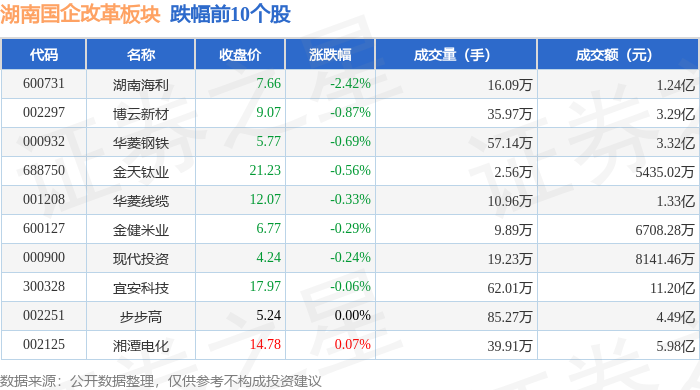 从资金流向上来看,当日湖南国企改革板块主力资金净流入5.27亿元,游资资金净流出1.77亿元,散户资金净流出3.5亿元。湖南国企改革板块个股资金流向见下表: