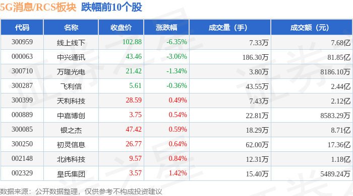 证券之星消息,10月31日5G消息/RCS板块较上一交易日上涨0.55%,福石控股领涨。当日上证指数报收于3954.79,下跌0.81%。深证成指报收于13378.21,下跌1.14%。5G消息/RCS板块个股涨跌见下表: