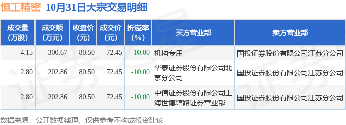 证券之星消息,10月31日恒工精密发生大宗交易,交易数据如下: