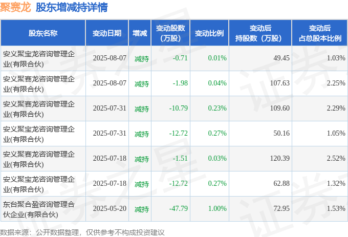 截至2025年10月31日收盘,聚赛龙(301131)报收于49.3元,上涨1.25%,换手率3.51%,成交量1.08万手,成交额5321.32万元。
