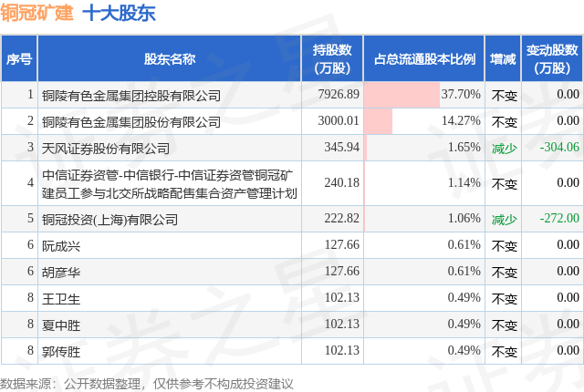 根据铜冠矿建2025年三季报公布的十大股东详情如下: