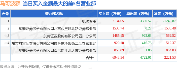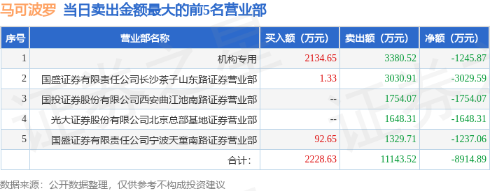 从龙虎榜公布的当日买卖数据来看,机构合计净卖出1245.87万元。曲江池等知名游资榜上有名。(知名游资曲江池一般指国投证券股份有限公司西安曲江池南路证券营业部席位,根据市场资料整理,仅供参考)
