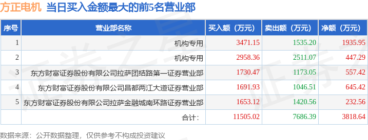 证券之星消息,沪深交易所2025年10月31日公布的交易公开信息显示,方正电机(002196)因日换手率达到20%的前5只证券登上龙虎榜。此次是近5个交易日内第2次上榜。