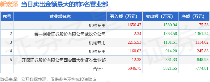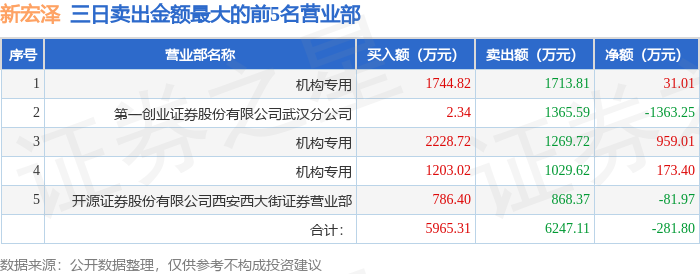 证券之星消息,沪深交易所2025年10月31日公布的交易公开信息显示,新宏泽(002836)因日振幅值达到15%的前5只证券,连续三个交易日内,涨幅偏离值累计达到20%的证券登上龙虎榜。此次是近5个交易日内第1次上榜。