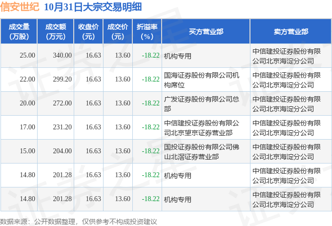证券之星消息,10月31日信安世纪发生大宗交易,交易数据如下: