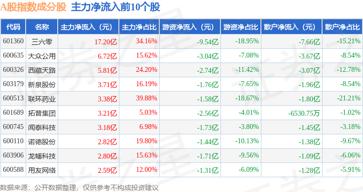 资金流向方面,A股指数(000002)成份股当日主力资金净流出合计346.75亿元,游资资金净流入合计59.44亿元,散户资金净流入合计287.31亿元。成份股资金流向详情见下表: