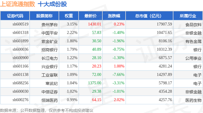 证券之星消息,10月31日,上证流通(000090)指数报收于1438.64点,跌0.68%,成交10157.44亿元,换手率1.42%。当日该指数成份股中,上涨的有1380家,三生国健以20.0%的涨幅领涨,下跌的有753家,正帆科技以14.3%的跌幅领跌。