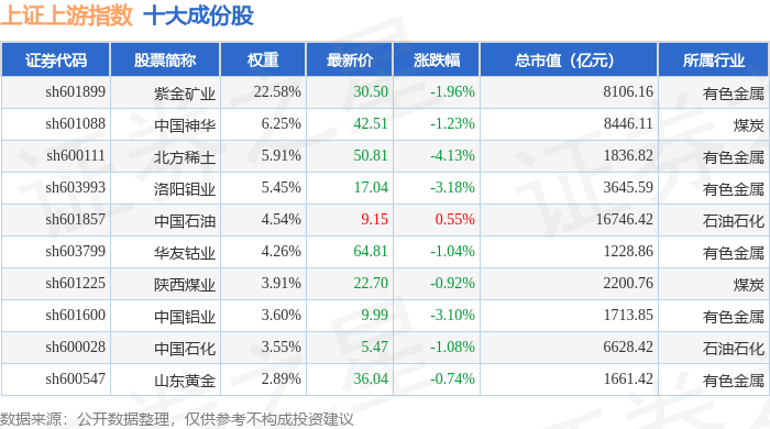 证券之星消息,10月31日,上证上游(000094)指数报收于4276.78点,跌1.73%,成交673.22亿元,换手率0.87%。当日该指数成份股中,上涨的有8家,方大炭素以2.33%的涨幅领涨,下跌的有38家,西部超导以7.4%的跌幅领跌。