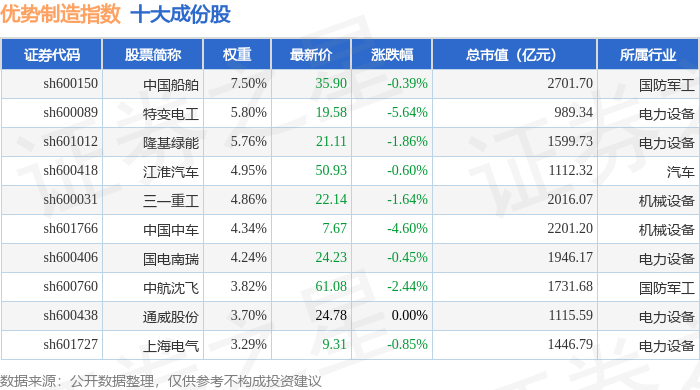 优势制造(000146)指数十大成份股详情如下: