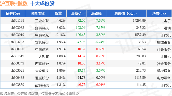 沪互联+(000162)指数十大成份股详情如下: