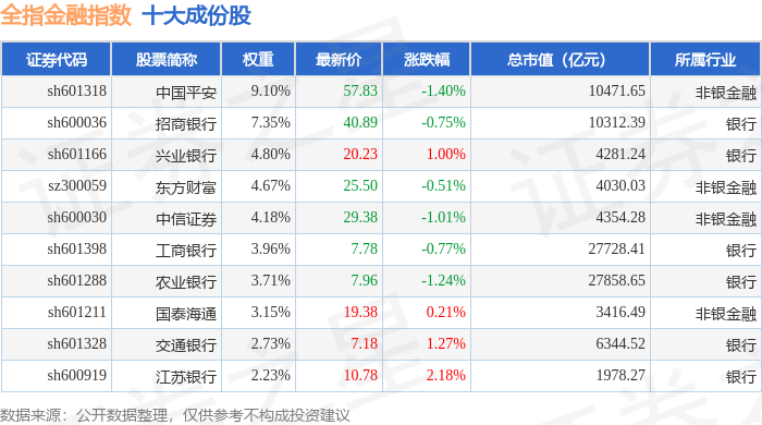全指金融(000992)指数十大成份股详情如下: