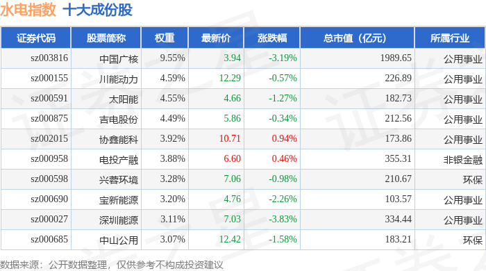 资金流向方面,水电指数(399234)成份股当日主力资金净流出合计3.48亿元,游资资金净流入合计1.13亿元,散户资金净流入合计2.35亿元。成份股资金流向详情见下表: