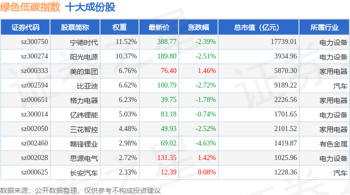 资金流向方面,绿色低碳(399258)指数成份股当日主力资金净流出合计87.16亿元,游资资金净流入合计11.6亿元,散户资金净流入合计75.56亿元。成份股资金流向详情见下表: