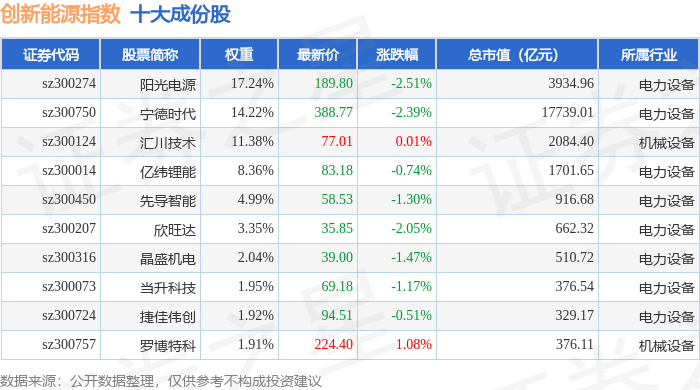 资金流向方面,创新能源(399266)指数成份股当日主力资金净流出合计48.77亿元,游资资金净流入合计5.72亿元,散户资金净流入合计43.06亿元。成份股资金流向详情见下表: