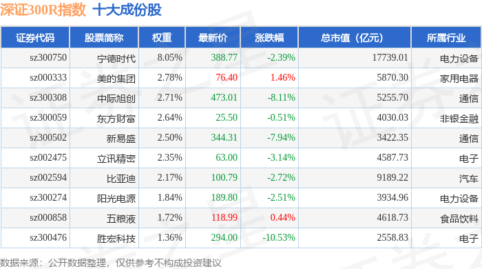 资金流向方面,深证300R(399344)指数成份股当日主力资金净流出合计296.34亿元,游资资金净流入合计84.19亿元,散户资金净流入合计212.15亿元。成份股资金流向详情见下表:
