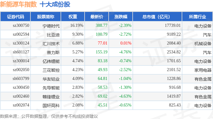 资金流向方面,新能源车(399417)指数成份股当日主力资金净流出合计87.75亿元,游资资金净流入合计15.8亿元,散户资金净流入合计71.95亿元。成份股资金流向详情见下表: