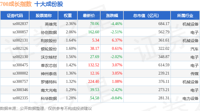 700成长(399628)指数十大成份股详情如下:
