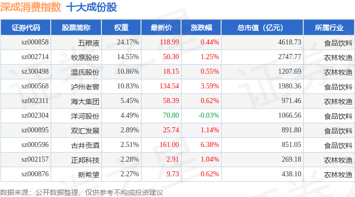 资金流向方面,深成消费(399684)指数成份股当日主力资金净流入合计11.67亿元,游资资金净流出合计6.55亿元,散户资金净流出合计5.12亿元。成份股资金流向详情见下表: