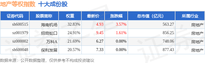证券之星消息,10月31日,地产等权(399983)指数报收于2266.06点,涨1.55%,成交31.56亿元,换手率1.32%。当日该指数成份股中,上涨的有2家,海南机场以3.57%的涨幅领涨。